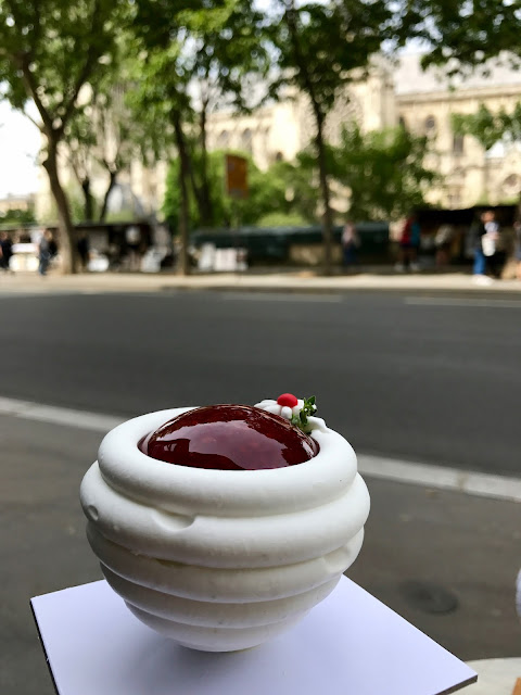 Their, signature piece is called Notre-Dam, it comprises of shortbread, apple mouse, green frosting hard shell, caramelized apples inside and it's topped with a granny smith apple cut into a fan. This is a delightful combination of tangy, sweet, smooth and crispy - a perfect dessert.